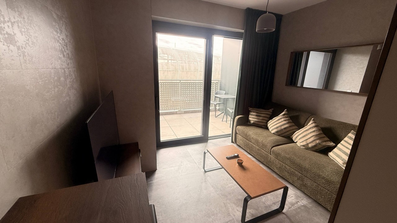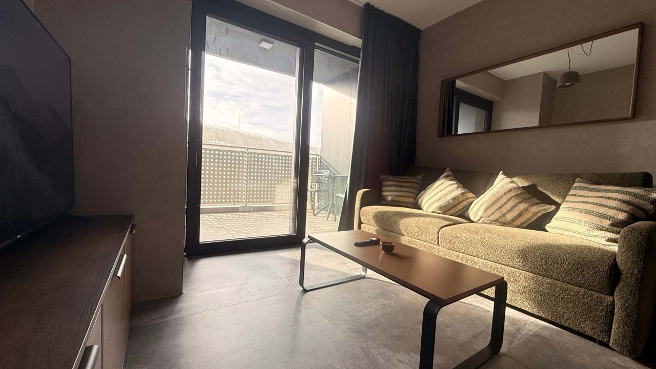 Svarog is a unique and prestigious place to stay when visiting Bratislava. This apartment fits up to 4 adults, 2 sleep on a regular King bed and 2 on a comfortable foldable sofa bed. A newly finished place with a stunning design will feel cozy and luxurious like a hotel place. Svarog is suitable for small families, romantic couples and also business travelers. Svarog is located on the 4th floor in a just built new modern building. It is oriented to the courtyard with a nice view of the mountain. Svarog is close to the National Football Stadium, so you might sometimes feel like a football fan. The apartment is completely furnished with all the necessary equipment you expect at home. It has a fully fitted kitchen, cutlery complete dishes to cook and bake like at home. Powerful ceiling air conditioning and unique separate sleeping place with comfortable mattress. You can always enjoy a huge terrace attached to this modern apartment.
